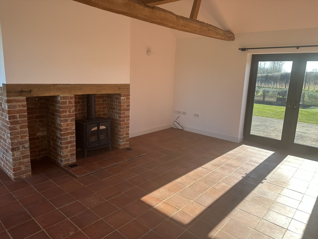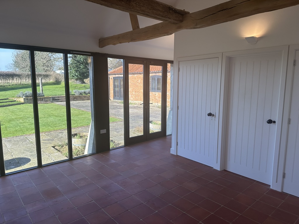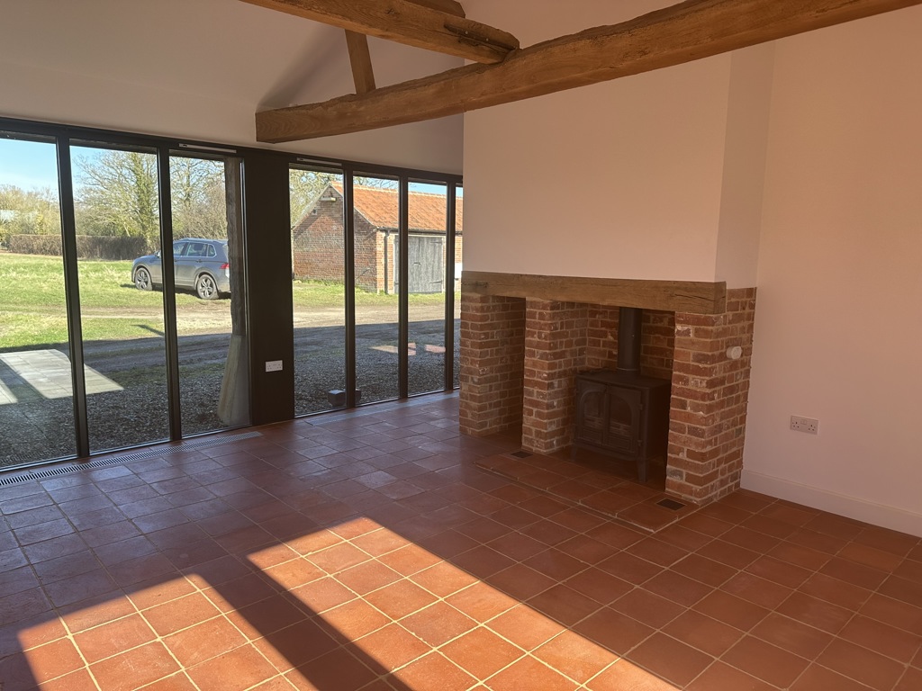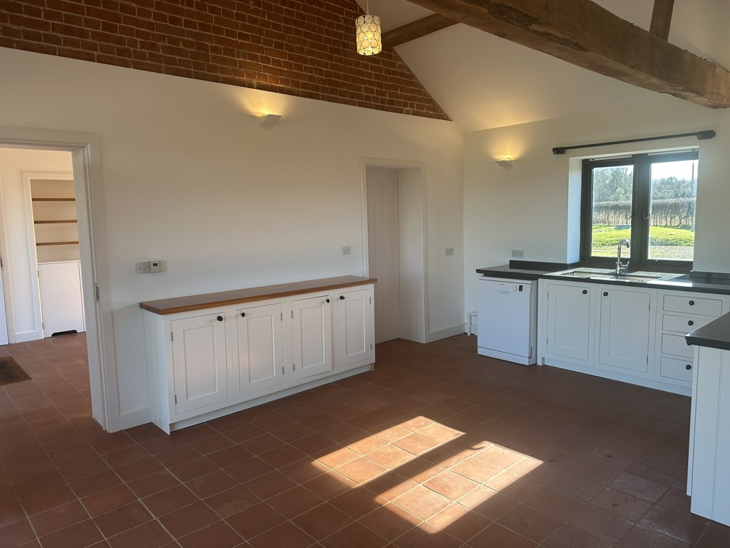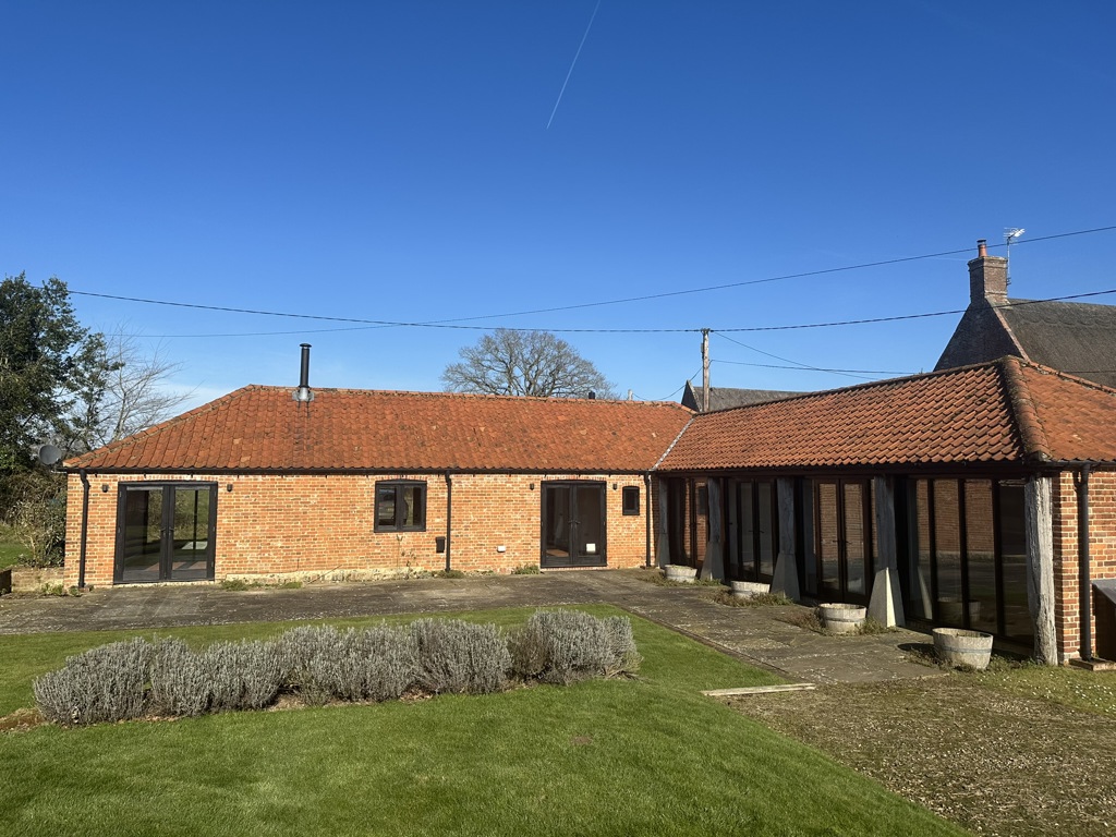 A single-storey barn conversion with three bedrooms, three bathrooms, large kitchen, reception room, and utility room.
