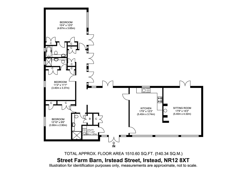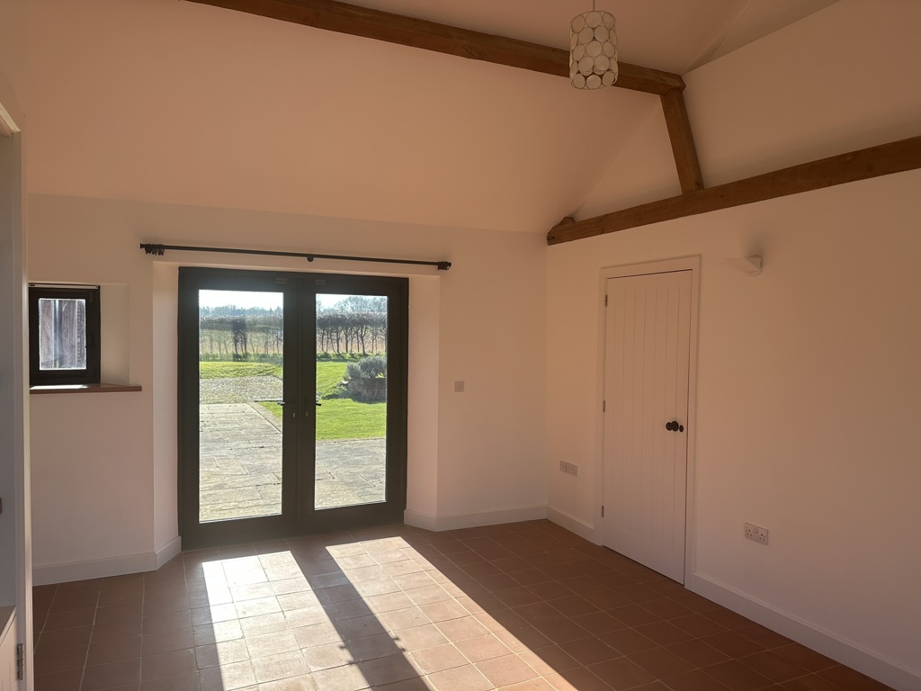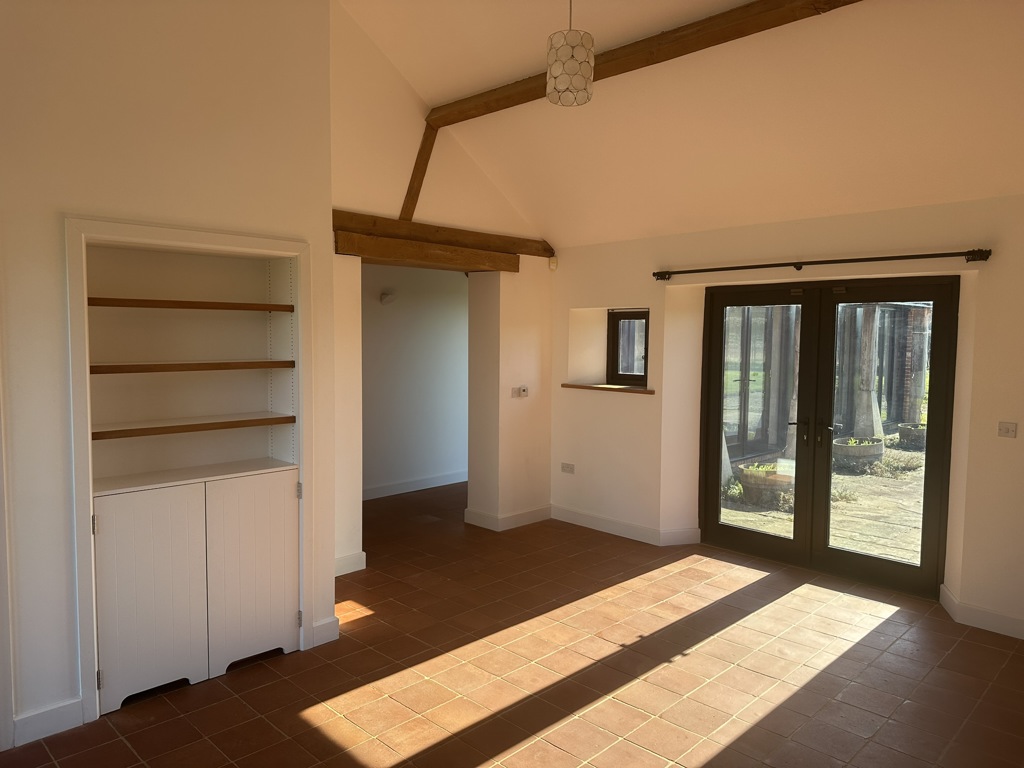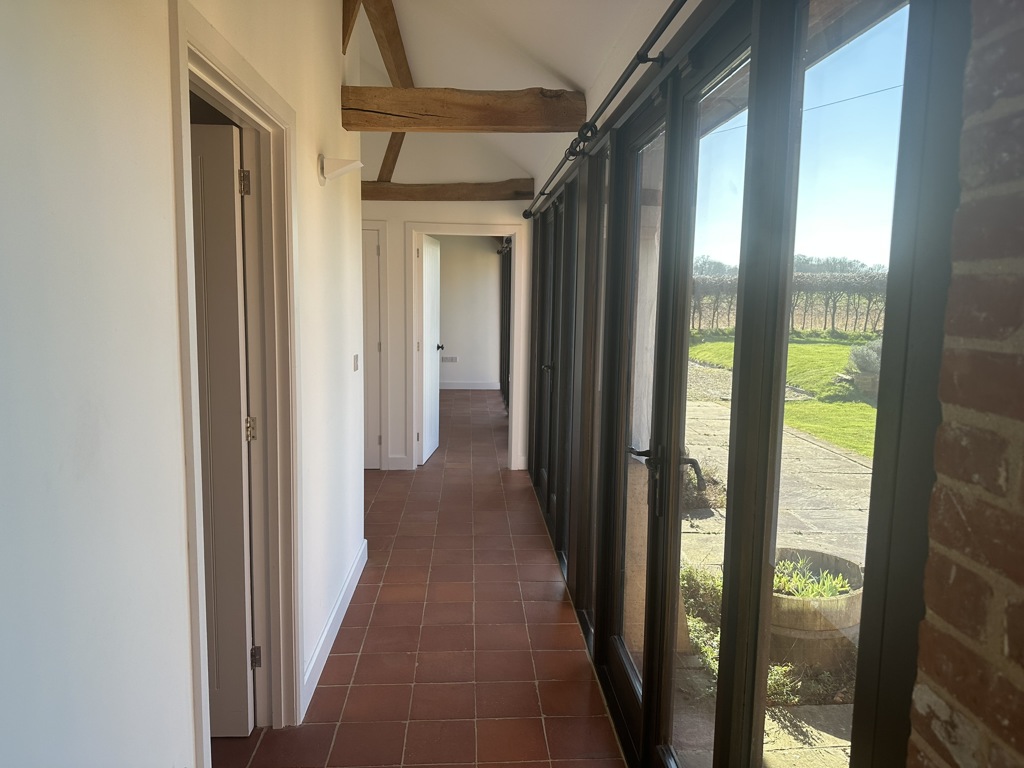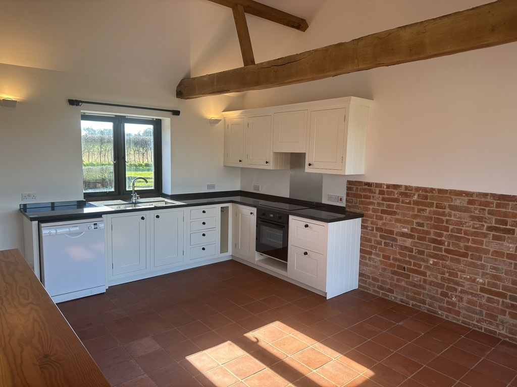 A single-storey barn conversion with three bedrooms, three bathrooms, large kitchen, reception room, and utility room.