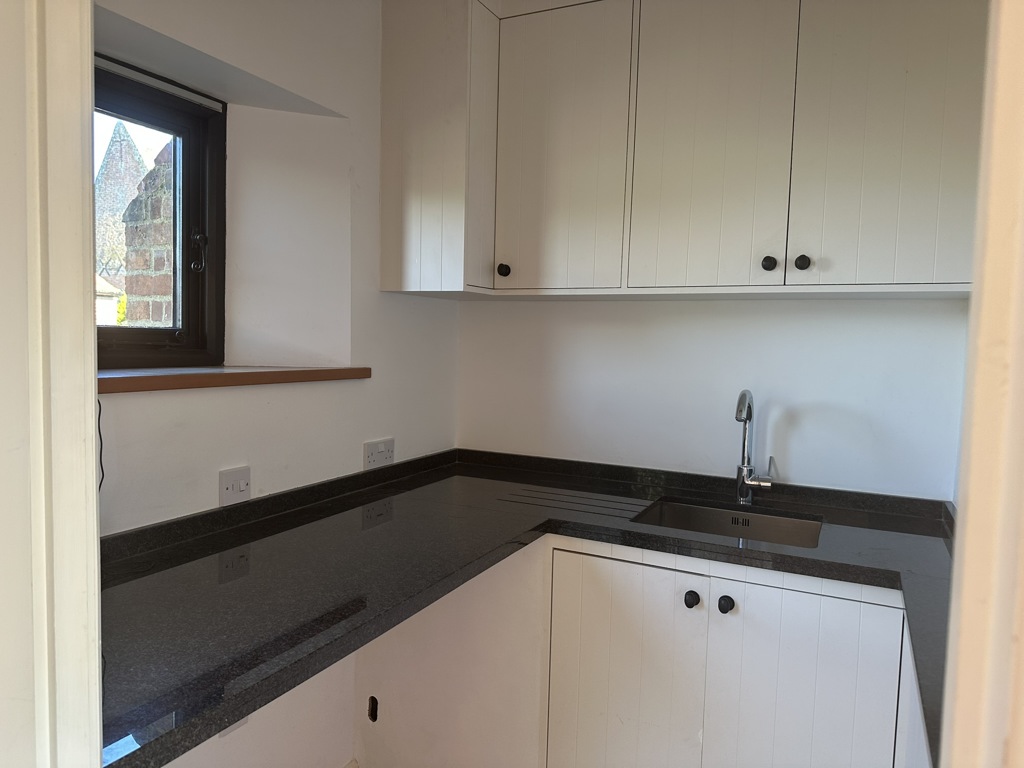 UTILITY ROOM (1.80m x 1.57m) with base and wall units, single sink and plumbing for washing machine