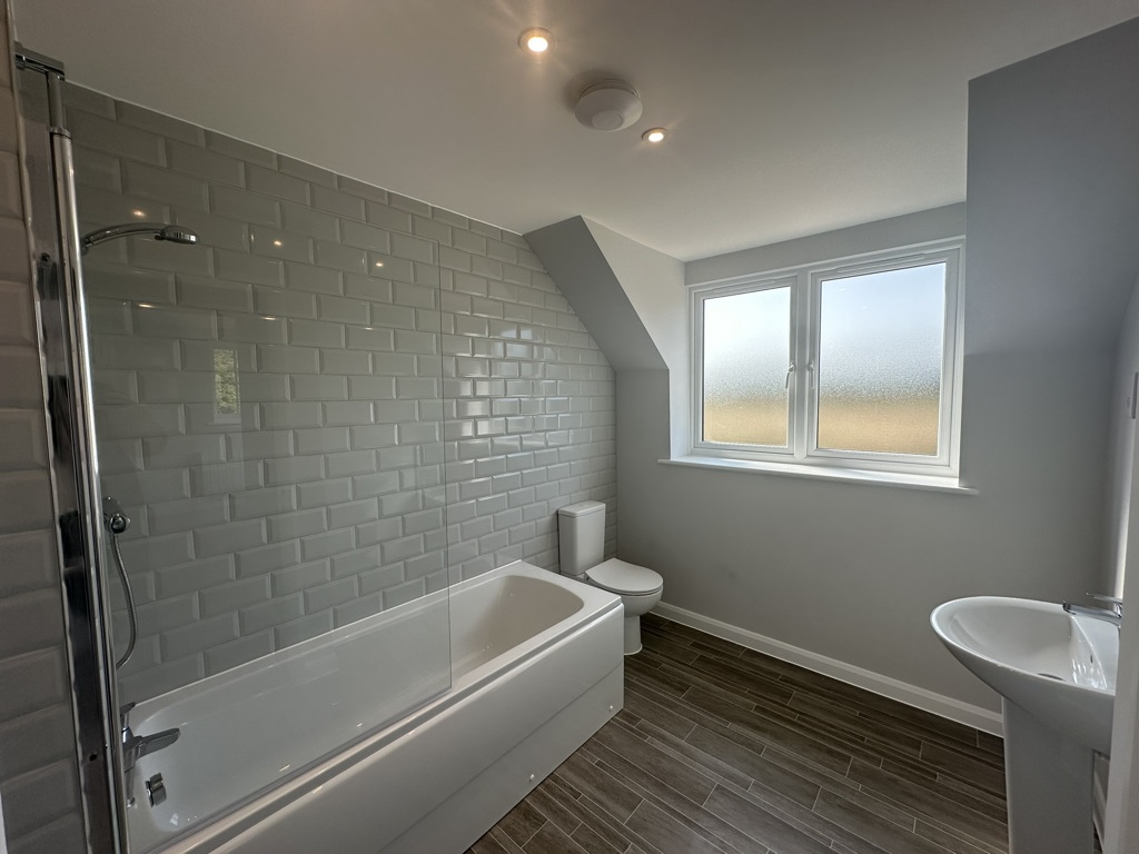 FAMILY BATHROOM (2.86m x 2.26m) - with a toilet, basin, bath with shower over and heated towel rail
