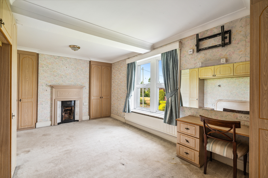 Double glazed casement windows to front and side elevation, original cast-iron fireplace, two radiators, built-in wardrobes.