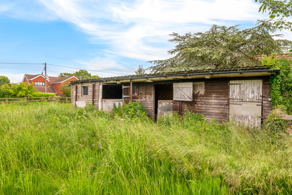 The property is approached by a long tarmac driveway with parking for several vehicles. The grounds extend to around 2 acres and offer fenced grass paddocks with a timber stable block with tack room and hay barn to the side elevation,