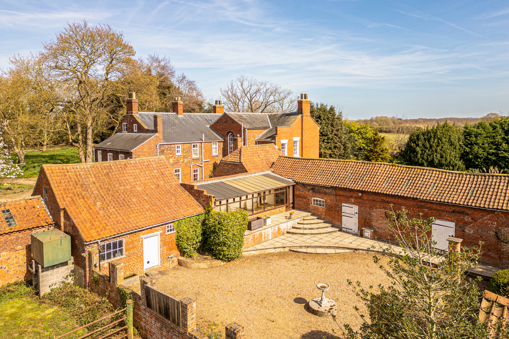 Whisby Hall is an attractive late Georgian manor house which has been in the same family for more than 100 years. The Hall was home to former wartime NFU President in 1942, Kit Nevile. The Hall has well proportioned accommodation including 5 bedrooms, 6 reception rooms and 3 bathrooms. Outside there is a double garage together with a range of brick outbuildings which adjoin the traditional farm buildings in the yard. The Hall is Grade II listed, under list entry number 1061963. Whisby Hall is accessed off Thorpe Road along an inviting private driveway leading to ample parking space next to the Hall. The Hall can also be accessed on foot through the entrance to the yard.