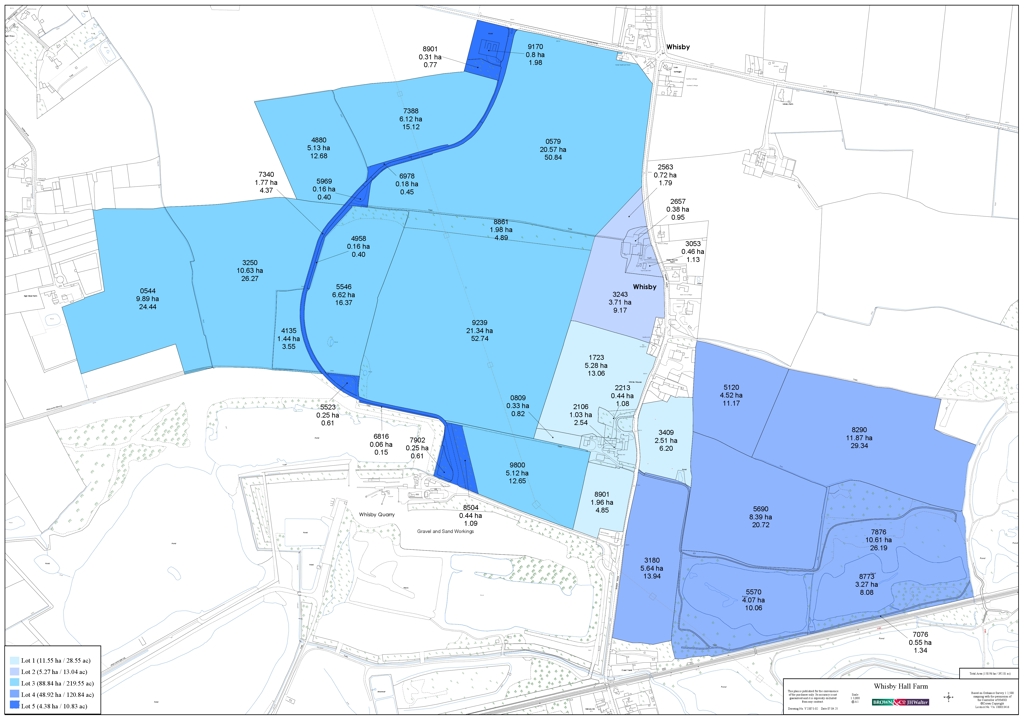 Whisby Hall Farm is offered for sale by private treaty, as a whole, or in any combination of the five lots. The farm is available with vacant possession on completion with the exception of Top House which is sold subject to a secure lifetime tenancy, the quarry haul road is subject to a lease and any holdover as stated in these sale particulars.