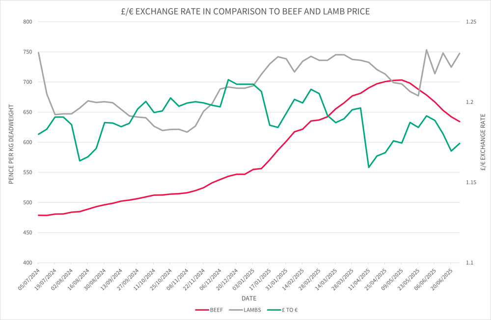 Lamb prices experienced another price increase at the end of quarter two of 2025 hitting a peak of 747.4 p/kg/dw (R3L) at the end of June 2025, despite lows of 677.1p/kg/dw in mid-May.